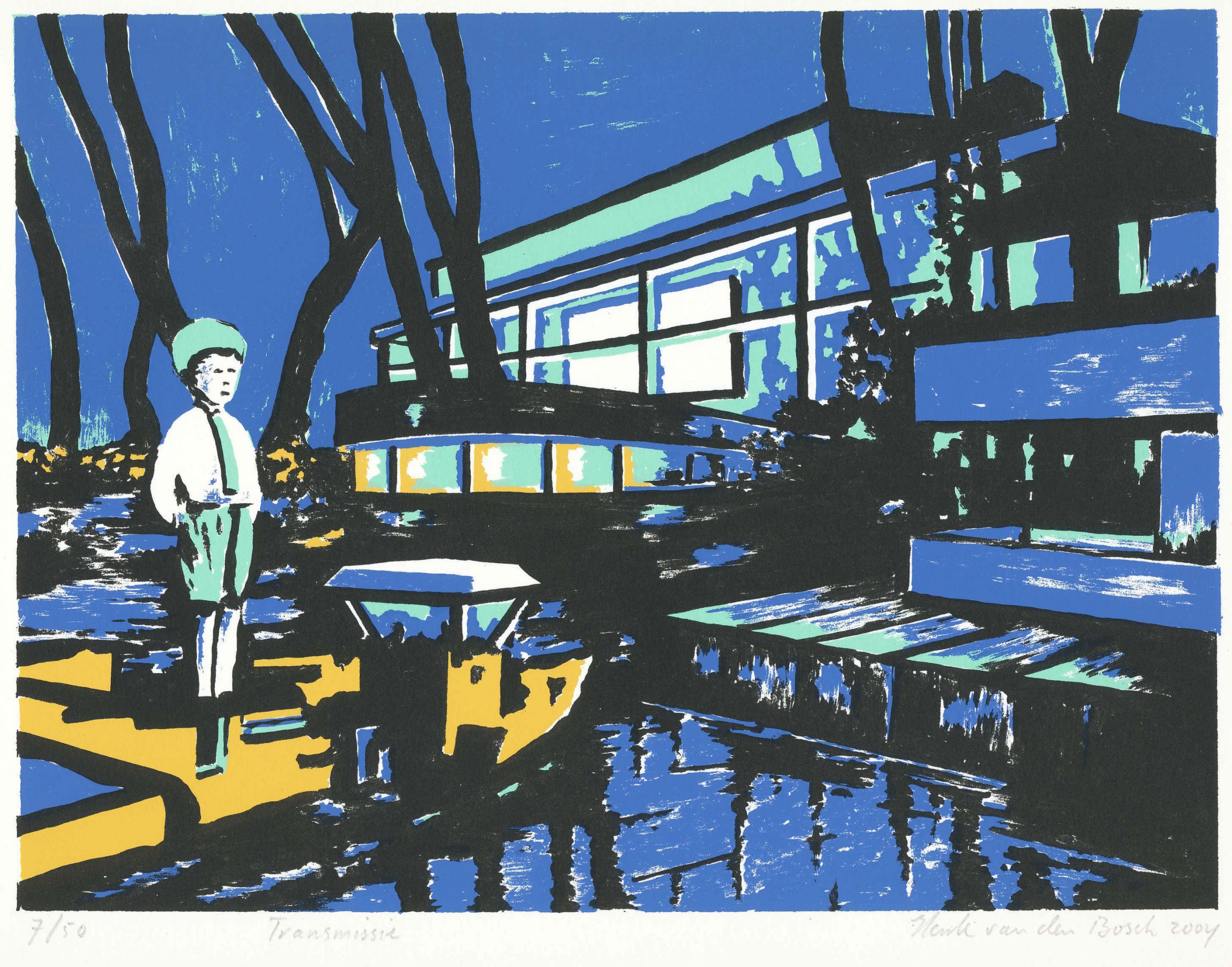 Zeefdruk, 2004, handgesigneerd door Henk van den Bosch, gedrukt in een oplage van 50 exemplaren. Formaat van de afbeelding is 24 – 18 cm, totale formaat van de prent is 36 – 30 cm.
